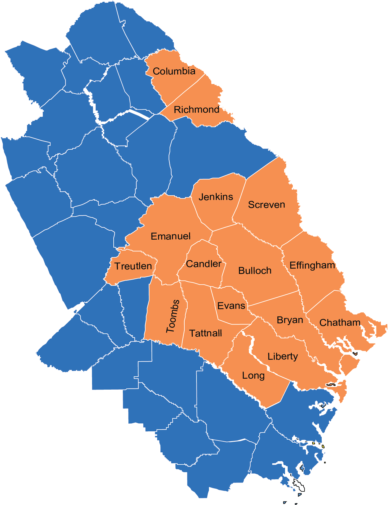 FTZ 104 ASF Service Area. Not all parts of Burke County are included.